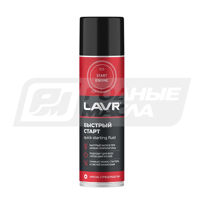 Специализированный аэрозоль облегчает запуск двигателя в условиях низких температур, повышенной влажности и при заправке некачественным топливом. Продукт содержит вещества с повышенной способностью к воспламенению, которые быстро запускают двигатель, и смазывающие компоненты, устраняющие риски холодного запуска. Применяется для распыления в систему впуска бензиновых и дизельных двигателей.