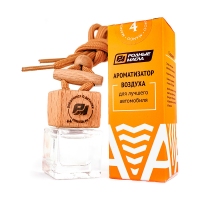 Фирменный ароматизатор Родные масла в удобном стеклянном подвесном флаконе с деревянной крышкой.